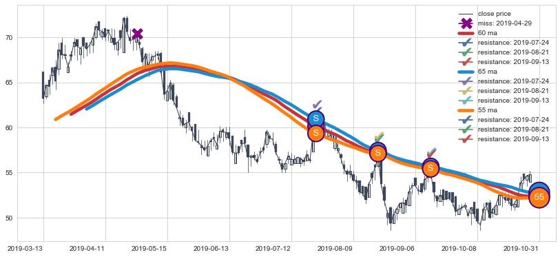➢ 最优均线组合共正确确认支撑阻力信号4处,正确确认率 44.44%