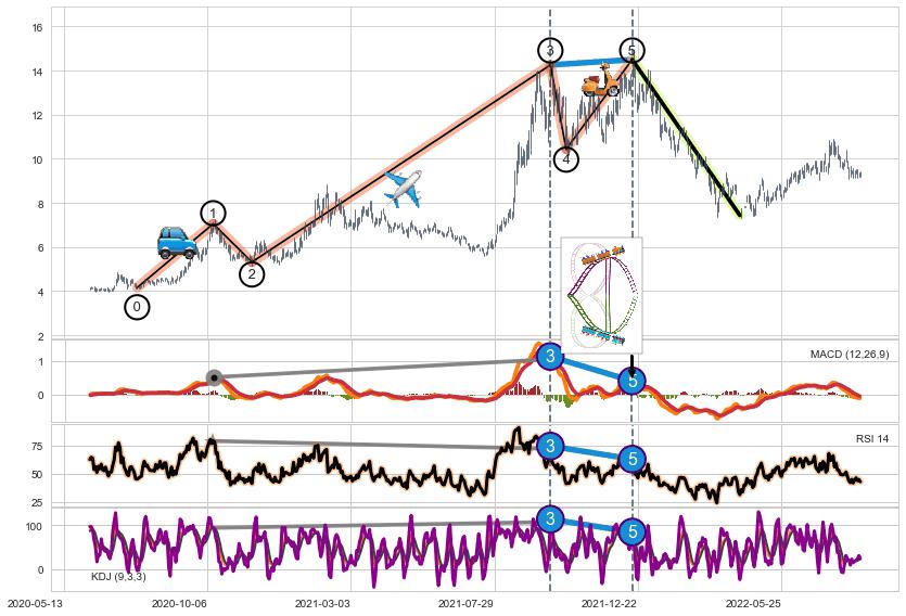 ➣ 波浪理论:猜想达到c点后小回调终止反转上涨 → 上涨 → 【拐点】临近 → 阶段均值回复结束后继续大周期趋势跟踪