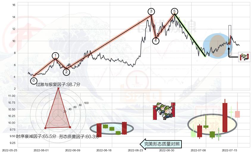 ➢ 🕰 价格走势在2022-06-23至2022-06-23期间形成单针探底(定海神针),残存影响值:3.79