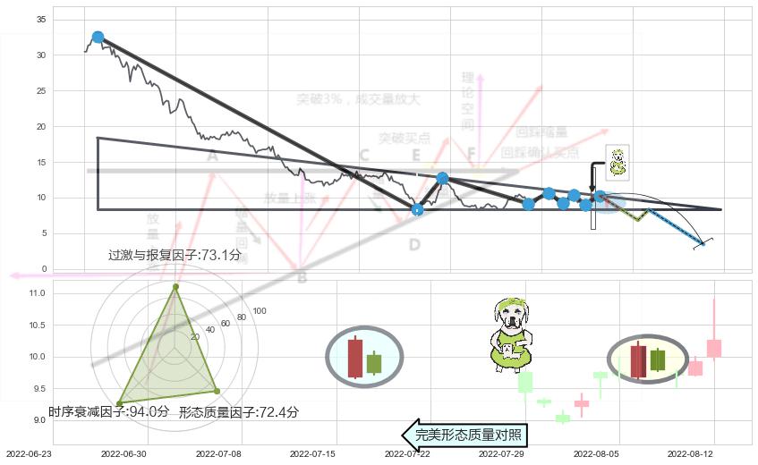 ➢ 【未确认突破,预测即将形成突破】下跌矩形整理起点:2022-04-04, 预测突破点:2022-08-23,形态共94交易日