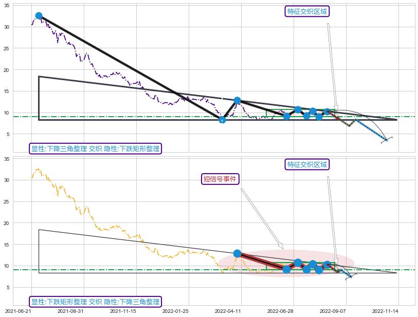 ➢ 下跌矩形整理属【短级别信号事件】下降三角整理属【长级别信号事件】长短周期组合信号事件, 短长事件长度比31.52%