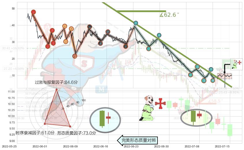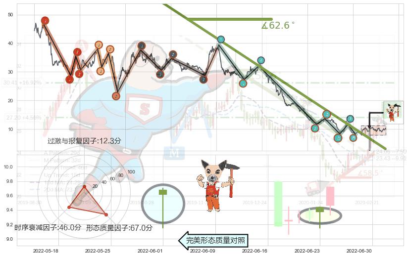从2019-07-30至2022-06-09,共包含706个交易日,阶段股价下跌-125.14%,阶段股价变动位移路程比: 1 : 11,下跌趋势角度: 62.6