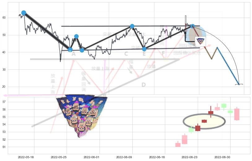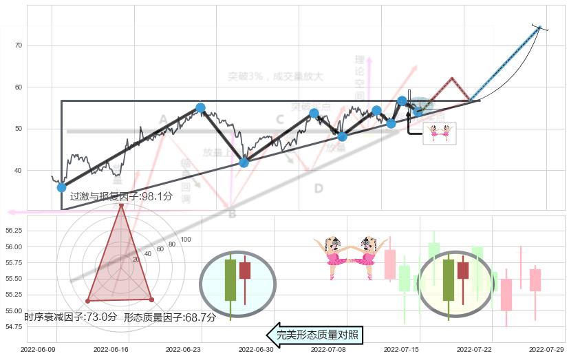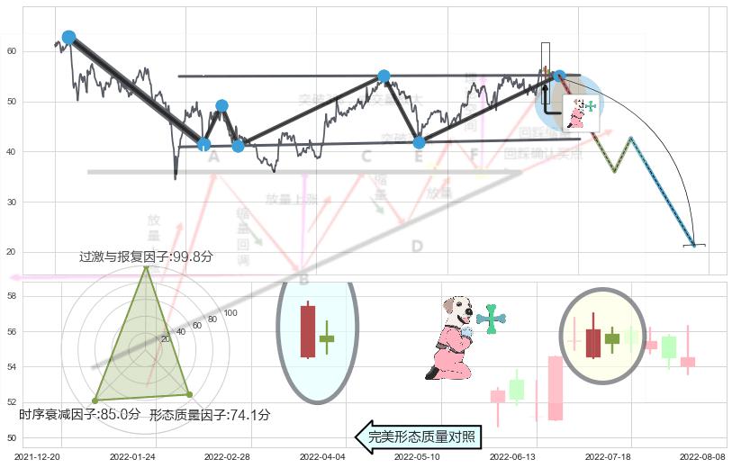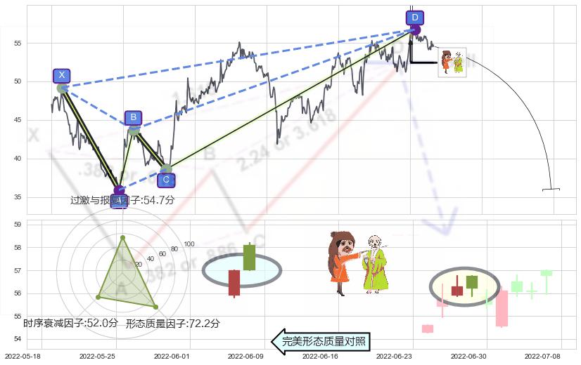 ➢ 【未确认突破,预测即将形成突破】降🚩楔型起点:2022-05-31, 预测突破点:2022-08-16,形态共54交易日