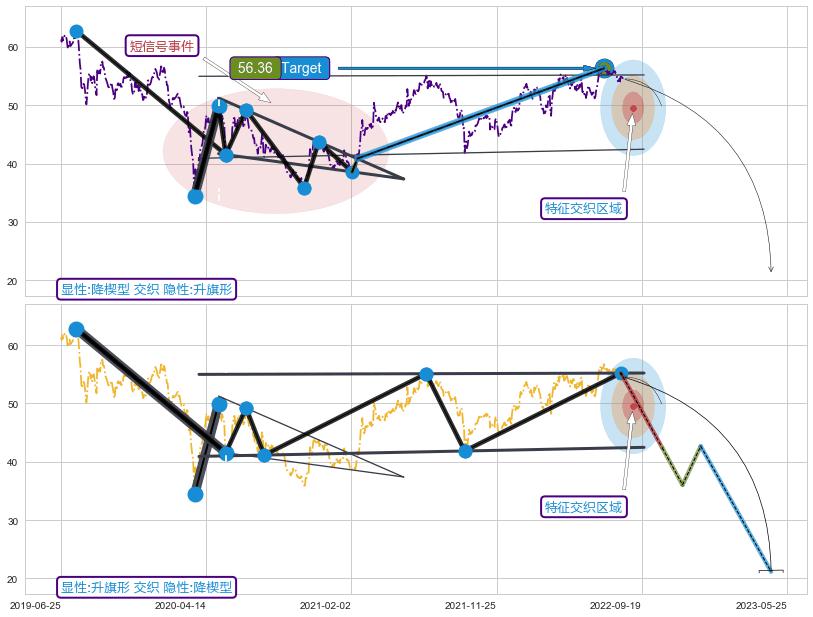 ➣ 降楔型:上涨target达成后 → 猜想上涨动能竭尽反转下跌 → 风险信号 → 大趋势均值回复