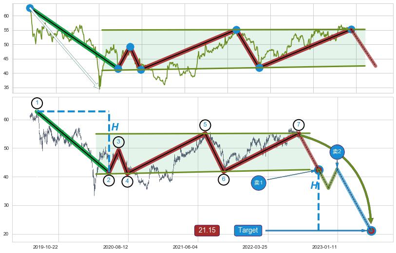 ➣ 最小中继整理跌幅→𝐇: 21.25 (𝐇旗杆的长度:旗杆起点→顶点)