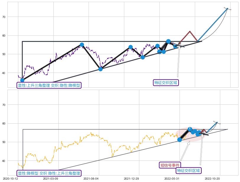 ➢ 降楔型属【短级别信号事件】上升三角整理属【长级别信号事件】长短周期组合信号事件, 短长事件长度比11.82%
