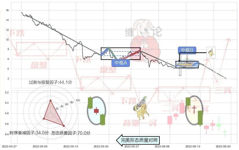 ➢ 谐波伽利c拐点下跌阻力 🔜 缠论中枢点破位中枢B支撑下拉 综合量化分数:43.71 【偏空】