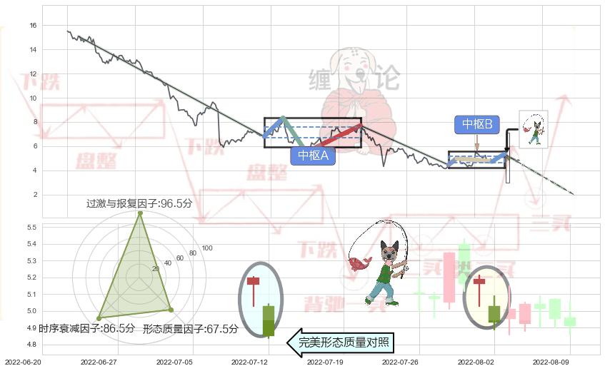 ➢ 【中枢B】:2022-05-30-2022-07-28,中枢由4笔构成,共42交易日, ZG=5.00, ZD=4.73