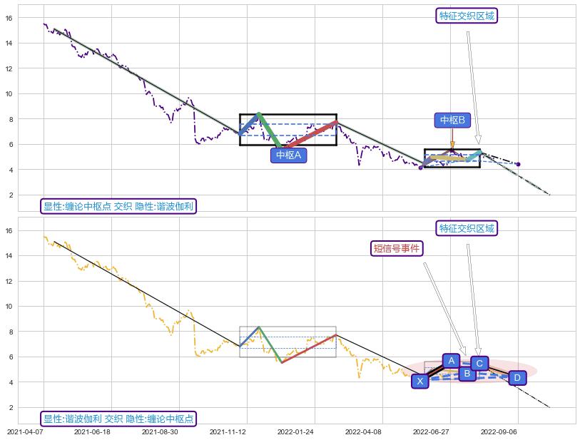 ➣ 缠论中枢点:猜想破位中枢B后持续下拉 → 下跌 → 破位中枢B支撑 → 持续趋势跟踪