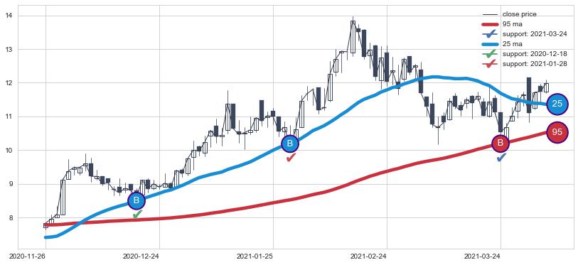 ➢ 最优均线组合共正确确认支撑阻力信号7处,正确确认率 70.00%