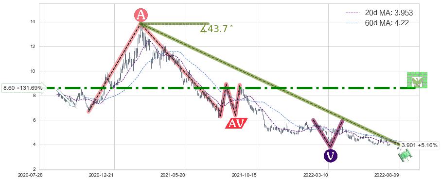 ♘ 阻力价格位8.60,可信任强度94.22%,距离最后交易2022-08-12形成的收盘价格3.710相差 +131.69%
