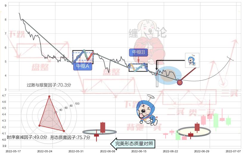 2022-06-22: 时域附近第一阻力位4.26持续的对下跌趋势进行阻拦,有效地放缓了下跌的速度。