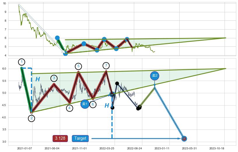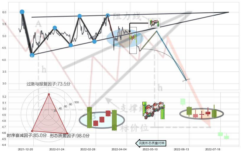 ➢ 【卖1】: 激进型 卖点→(2022-03-14: 4.95 )形成突破升🚩楔型【整理】形态