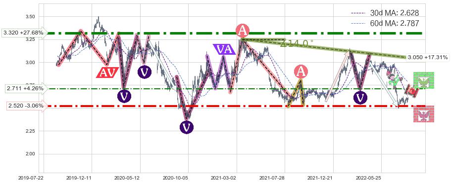 ♘ 阻力价格位2.711,可信任强度52.06%,距离最后交易2022-08-12形成的收盘价格2.600相差 +4.26%