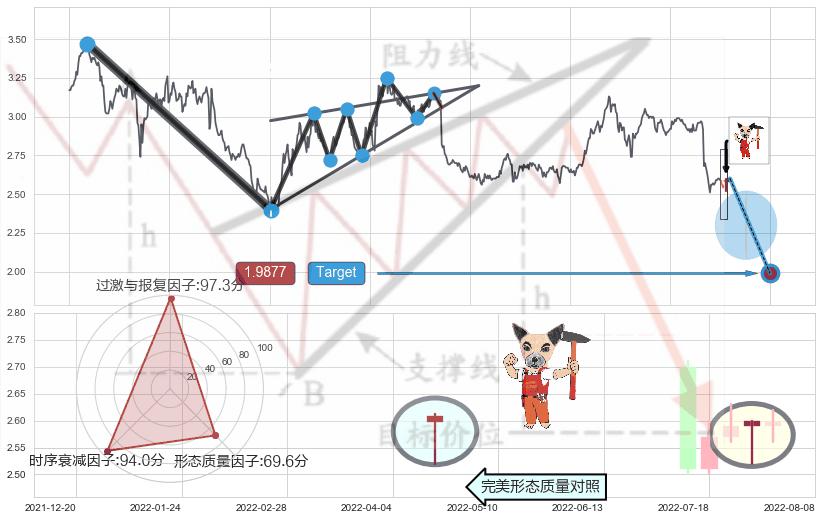 ➢ 🕰 价格走势在2022-08-01至2022-08-01期间形成锤头线(锤子线),残存影响值:6.73
