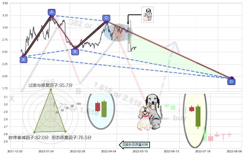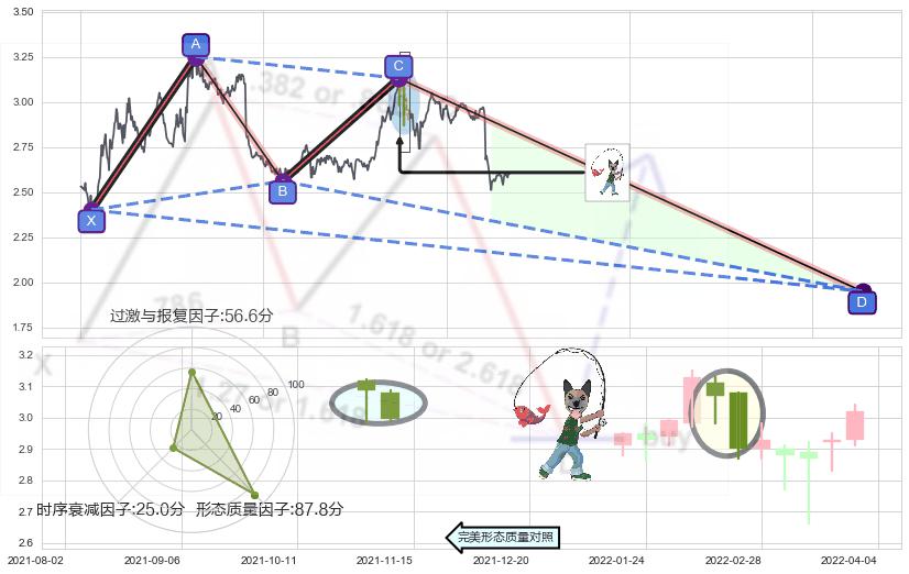➣ D点拟合预测价格1.9489,距离最后交易收盘价格2.600相差 -25.04%