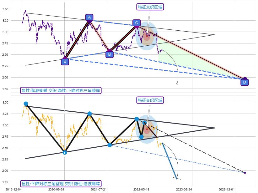 ➢ 谐波蝴蝶与下降对称三角整理信号事件周期长度级别相同,同周期信号事件