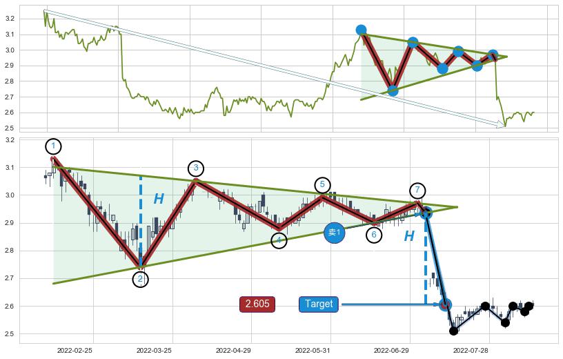 ➢ 【卖1】: 激进型 卖点→(2022-07-06: 2.935 )形成突破下降【对称】三角形整理【整理】形态