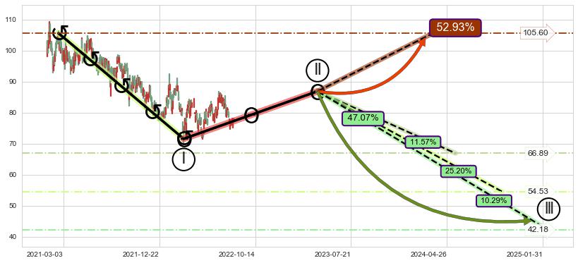 ➢ 高概率大级别循环下跌浪被破坏,反转向上(突破5浪起点)概率52.93%