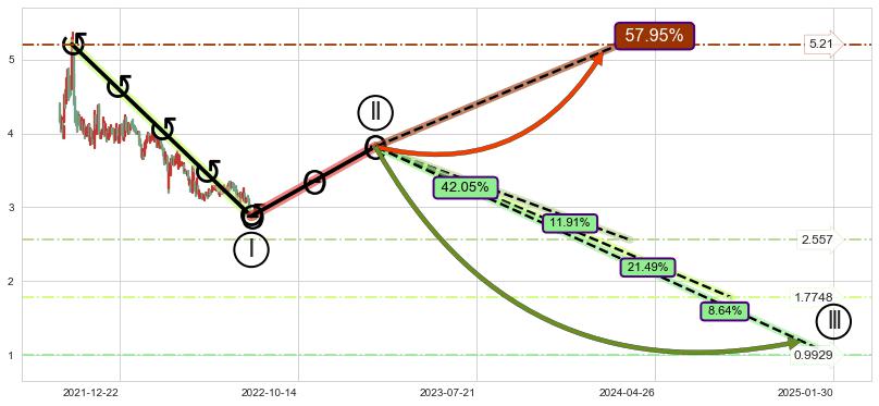 ➣ 大趋势循环浪继续向下概率42.05%