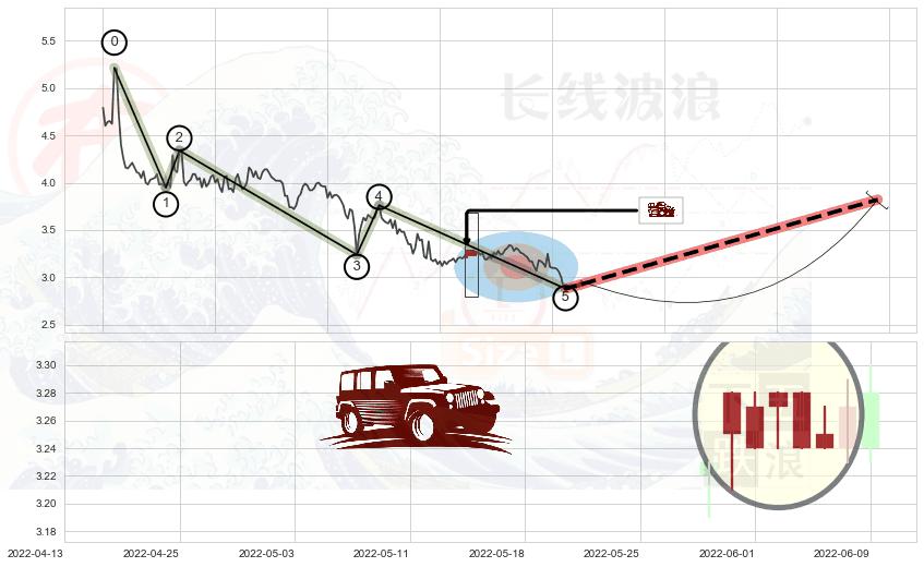 ➢ 🕰 价格走势在2022-05-31至2022-06-07期间形成低档五阳线,残存影响值:0.38