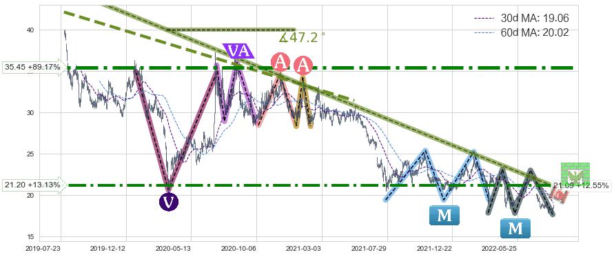 ♘ 阻力价格位21.20,可信任强度70.61%,距离最后交易2022-08-12形成的收盘价格18.74相差 +13.13%