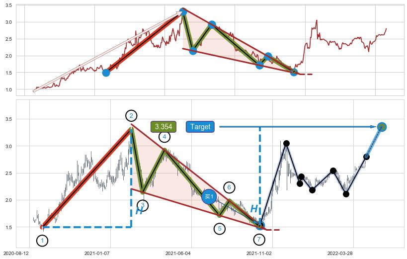➢ AI预测: 假定反转继续,第❸价格目标位置(2022-06-16, 3.310)