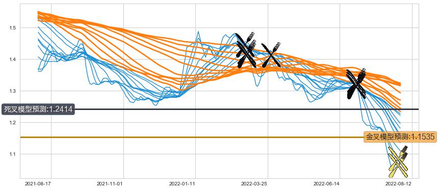 ➣ 45小时均线于(2022-03-03: 1.4444)形成【死叉】基于【死叉历史模型】预测死叉后最低波谷价格: 1.3370, 死叉后最低价格1.0400,已经下跌超出预测最低波谷价格, 预期反弹
