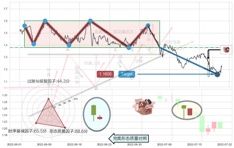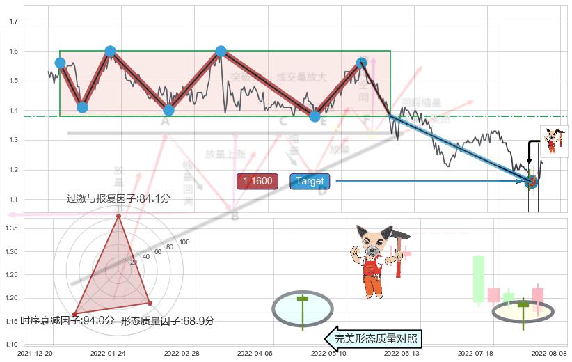 ➢ 【卖1】: 激进型 卖点→(2022-03-08: 1.3800 )形成突破下跌矩形整理【整理】形态