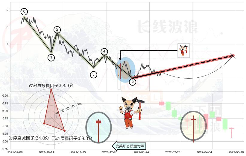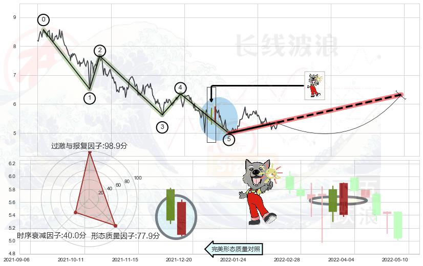 ➢ 曙光初现形态 🔜 波浪理论下跌浪:浪5反弹拐点 综合量化分数:51.34 【中性】