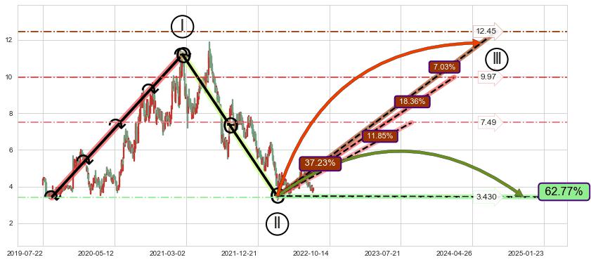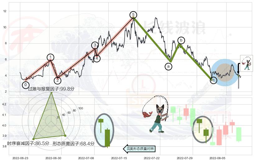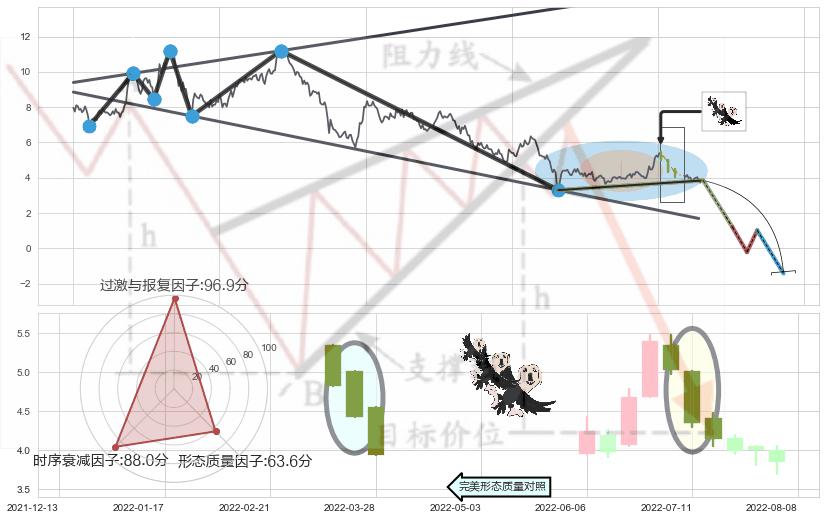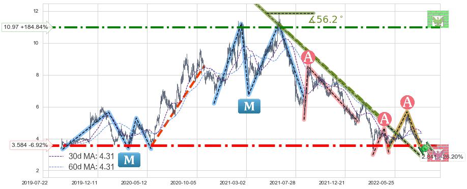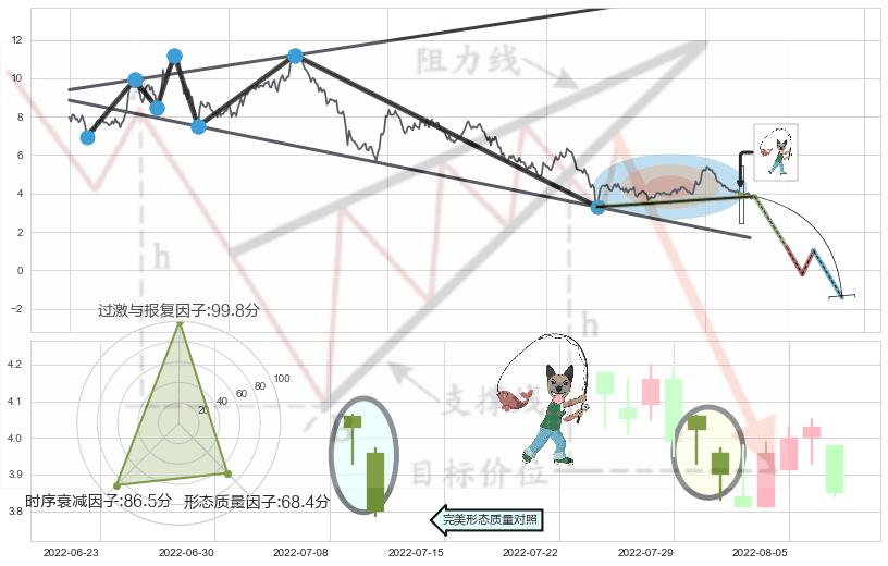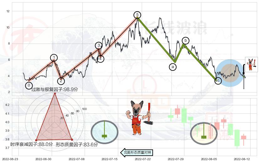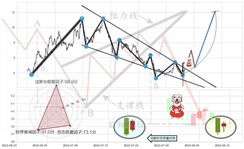 ♘ 支撑价格位3.584,可信任强度88.09%,距离最后交易2022-08-12形成的收盘价格3.850相差 -6.92%