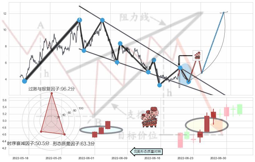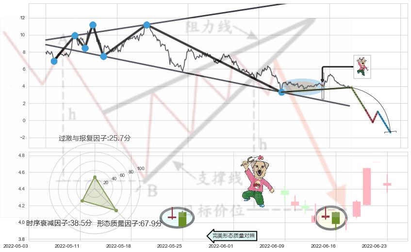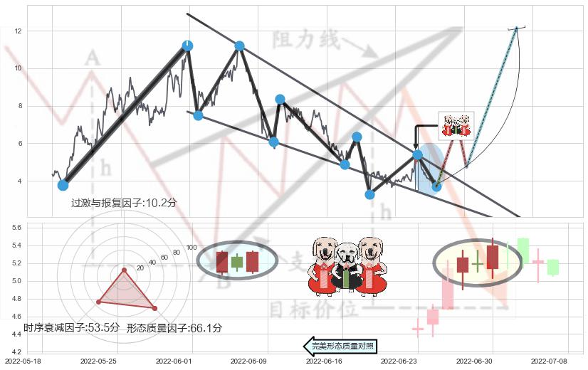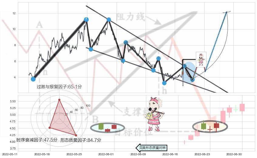 ➢ 🕰 价格走势在2022-06-28至2022-06-30期间形成两红夹一黑,残存影响值:2.58