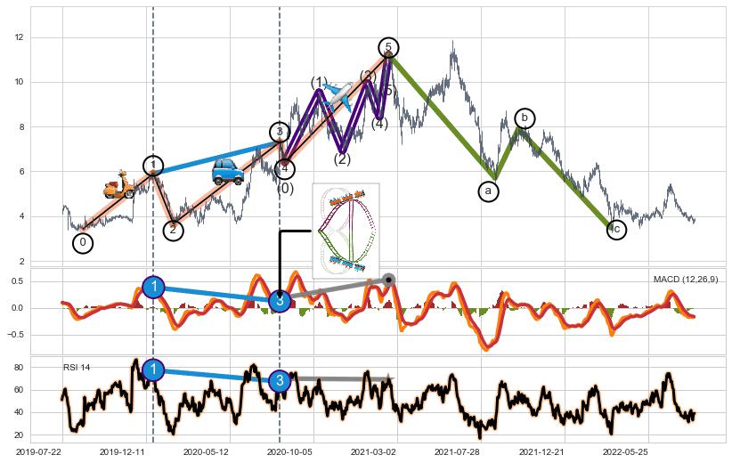 ➣ 第一, 三, 五浪上涨动能逐渐【增强变大】,趋势不断加固