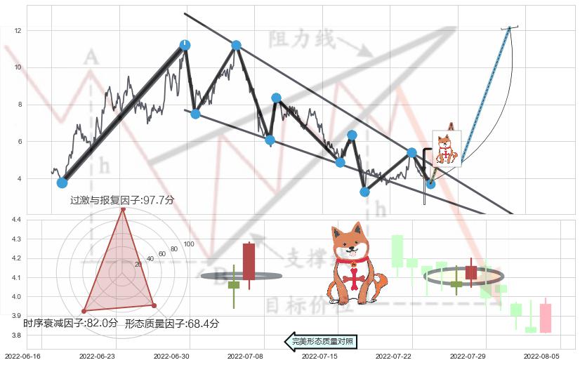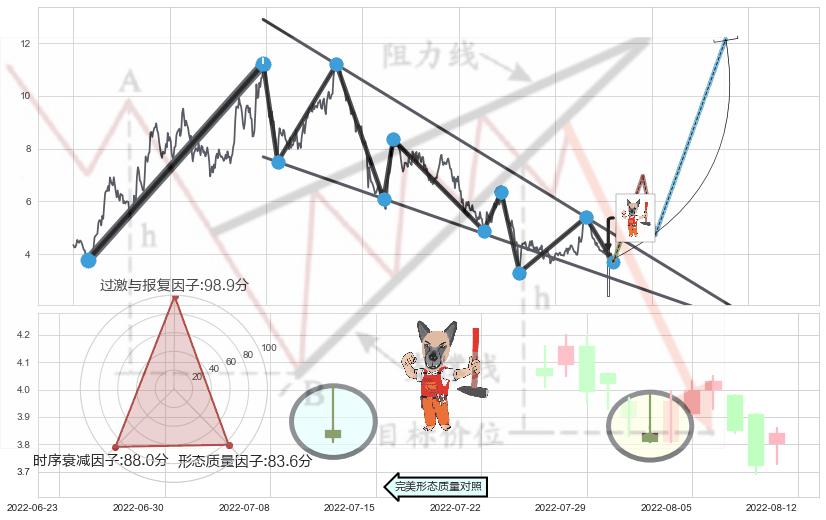 ♘ 阻力价格位10.97,可信任强度75.12%,距离最后交易2022-08-12形成的收盘价格3.850相差 +184.84%