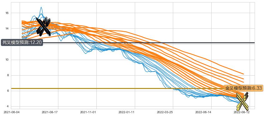 ➣ 60小时均线于(2021-07-22: 14.08)形成【死叉】基于【死叉历史模型】预测死叉后最低波谷价格: 12.12, 死叉后最低价格4.12,已经下跌超出预测最低波谷价格, 预期反弹