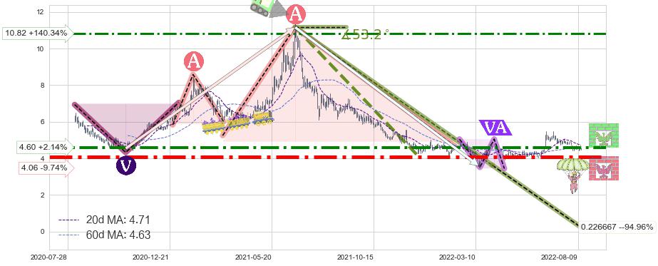 ♘ 阻力价格位4.60,可信任强度84.02%,距离最后交易2022-08-12形成的收盘价格4.50相差 +2.14%
