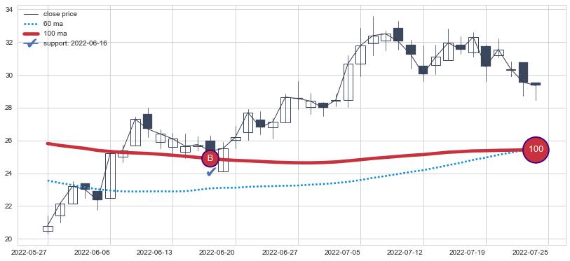 ➣ 70小时均线于(2022-06-02: 23.99)形成【金叉】基于【金叉历史模型】预测金叉后最高波峰价格: 31.15, 金叉后最高价格32.50,已经上涨超出预测最高波峰价格, 预期回调
