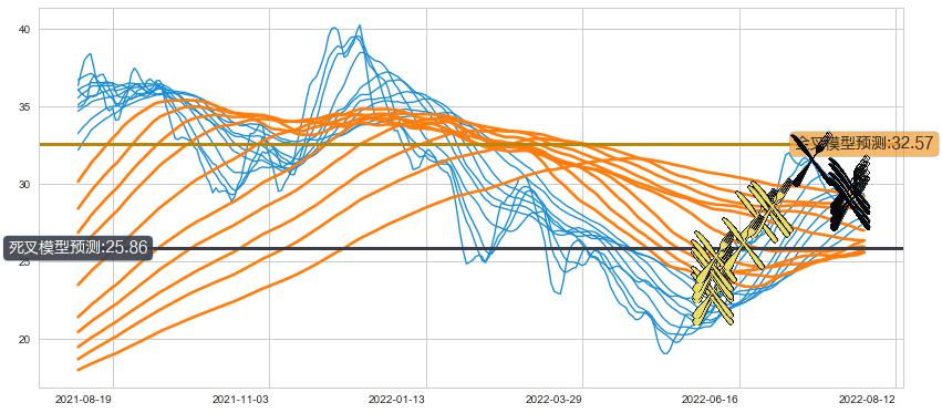 ➣ 40小时均线于(2022-08-05: 29.06)形成【死叉】基于【死叉历史模型】预测死叉后最低波谷价格: 25.81, 死叉后最低价格27.30,尚未达到预测最低波谷价格, 预期继续下跌