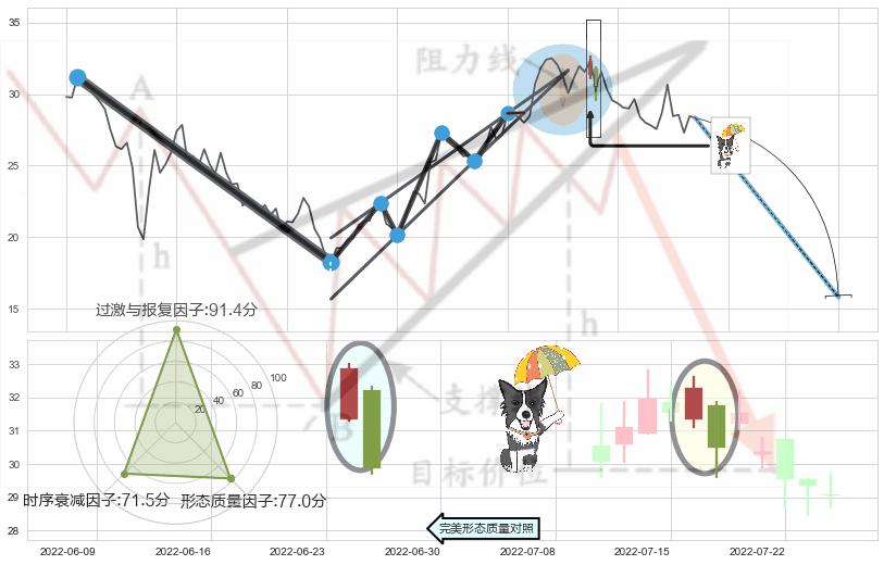 ➢ 🕰 价格走势在2022-07-20至2022-07-21期间形成射击之星形态,残存影响值:-6.75