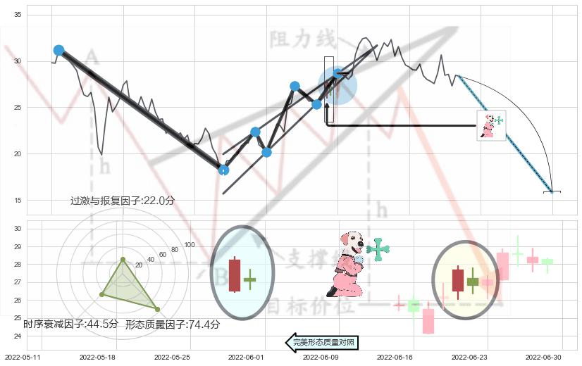 ➢ 【卖1】: 激进型 卖点→(2022-06-29: 28.69 )形成突破升🚩楔型【整理】形态