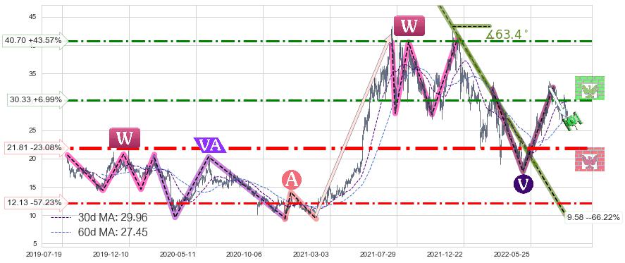 ♘ 阻力价格位30.33,可信任强度66.37%,距离最后交易2022-08-12形成的收盘价格28.35相差 +6.99%