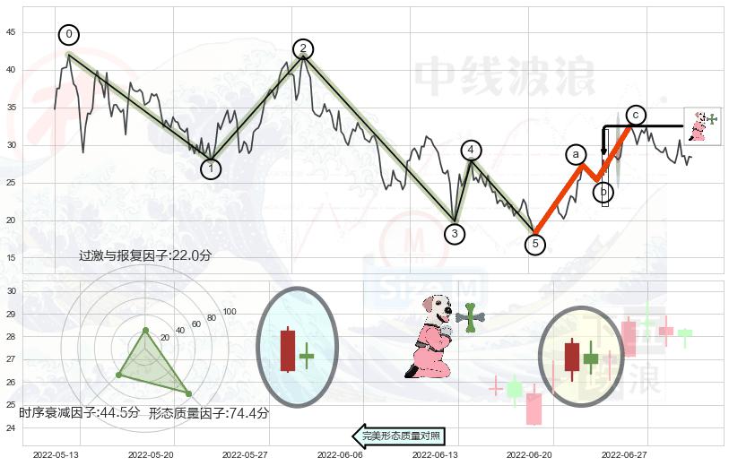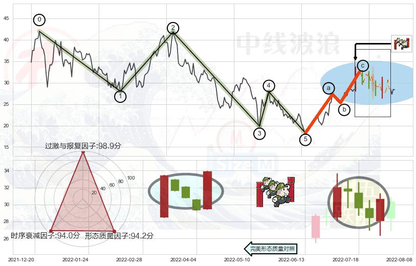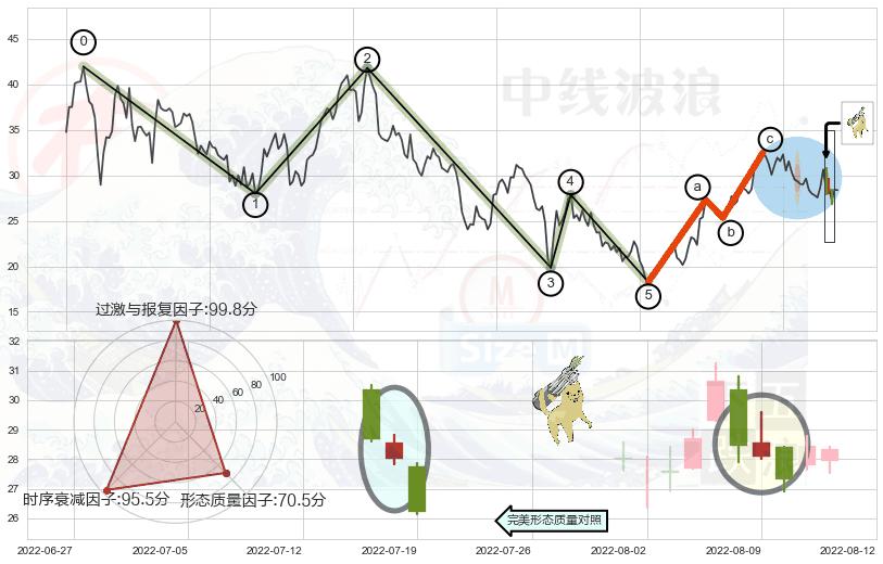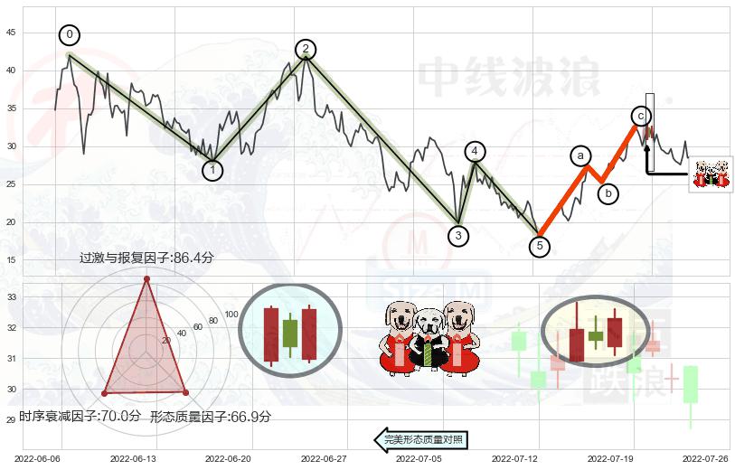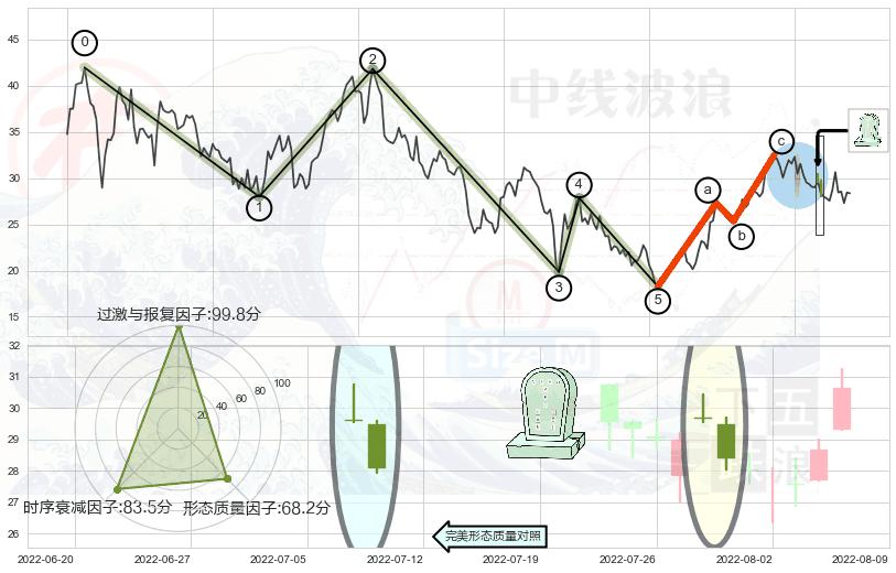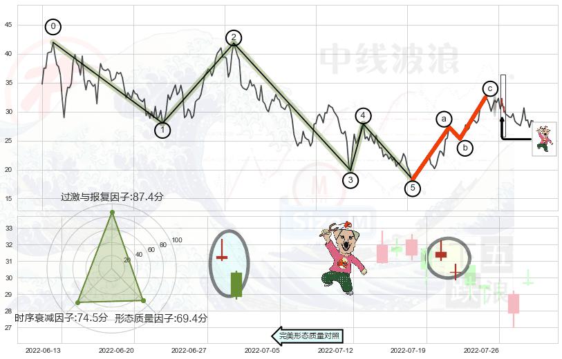 ➢ 射击之星形态 🔜 波浪理论c点反弹终止反转下跌 综合量化分数:45.30 【偏空】