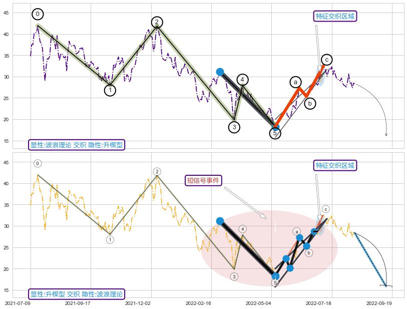 ➢ 升楔型属【短级别信号事件】波浪理论属【长级别信号事件】长短周期组合信号事件, 短长事件长度比34.45%