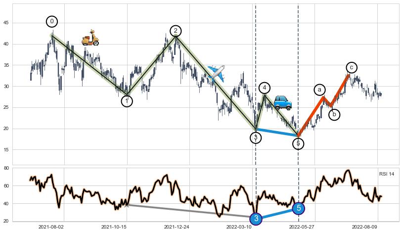➢ 第五驱动浪【动能】:🚙 70.34%, 是3个下跌浪中【中等】动能