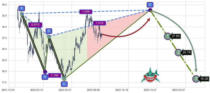 ➣ 未完成【鲨鱼】形态起点X: 2022-01-12, 已到达C点: 2022-05-10, 预测最终D点: 2022-12-09, 共201交易日