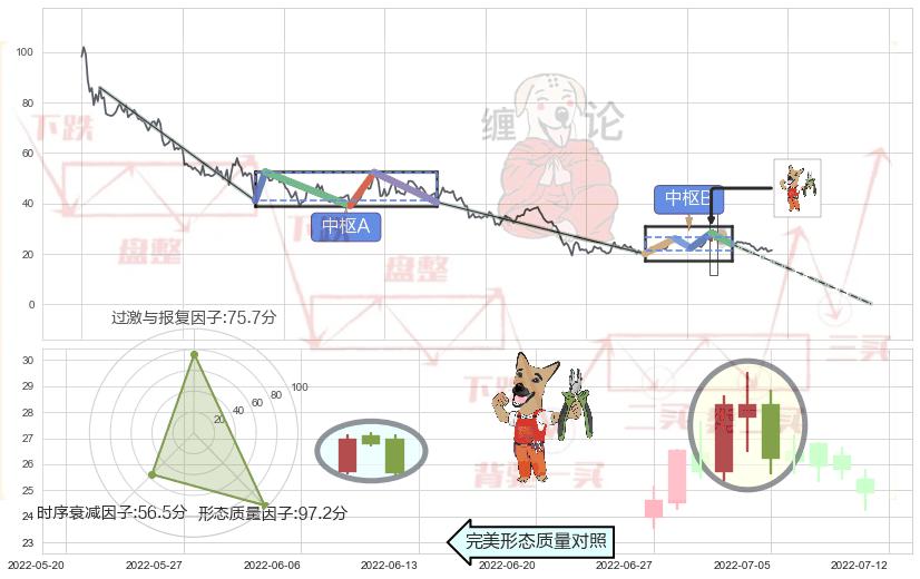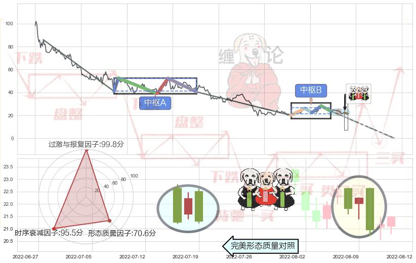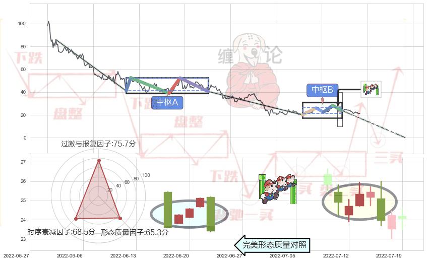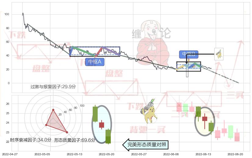 ➢ 下跌镊子线(n形磁铁) 🔜 缠论中枢点破位中枢B支撑下拉 综合量化分数:46.69 【中性】