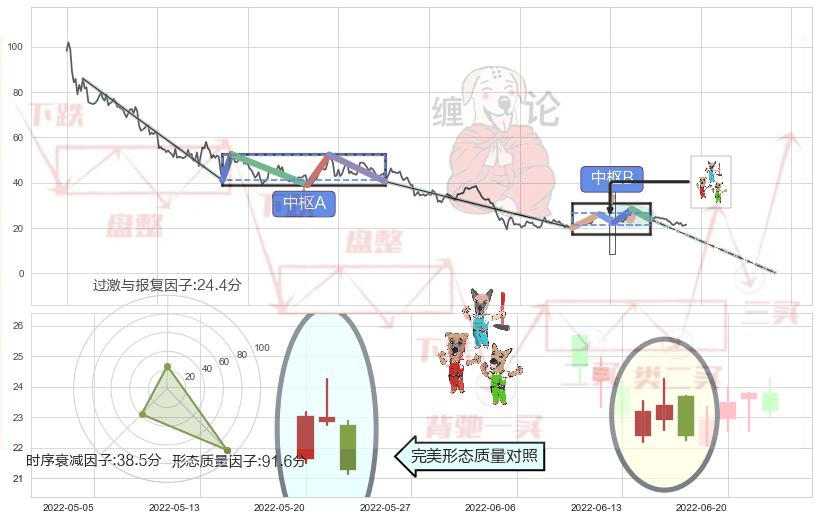➢ 下降三部曲(降势三鹤) 🔜 缠论中枢点破位中枢B支撑下拉 综合量化分数:43.35 【偏空】