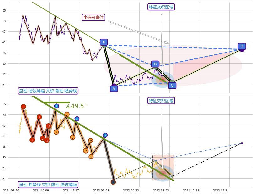 ➣ D点拟合预测价格36.59,距离最后交易收盘价格21.50相差 +70.18%
