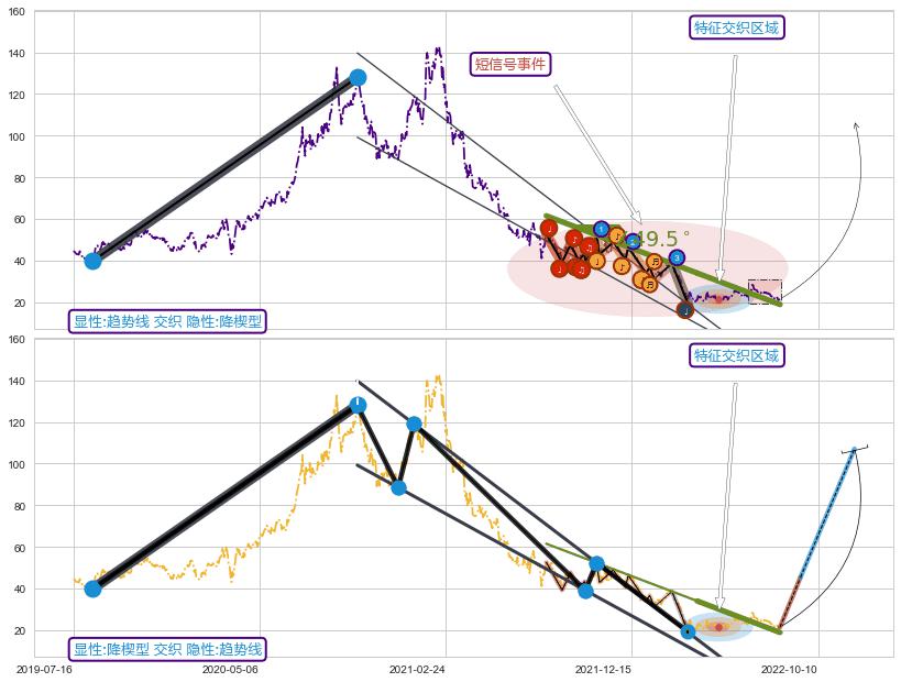 ➢ 趋势线属【短级别信号事件】降楔型属【长级别信号事件】长短周期组合信号事件, 短长事件长度比34.06%