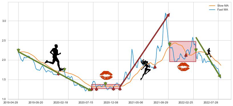 2022-03-14至2022-08-12 慢线与快线呈空头排列, 慢线与快线接触少,无缠绕